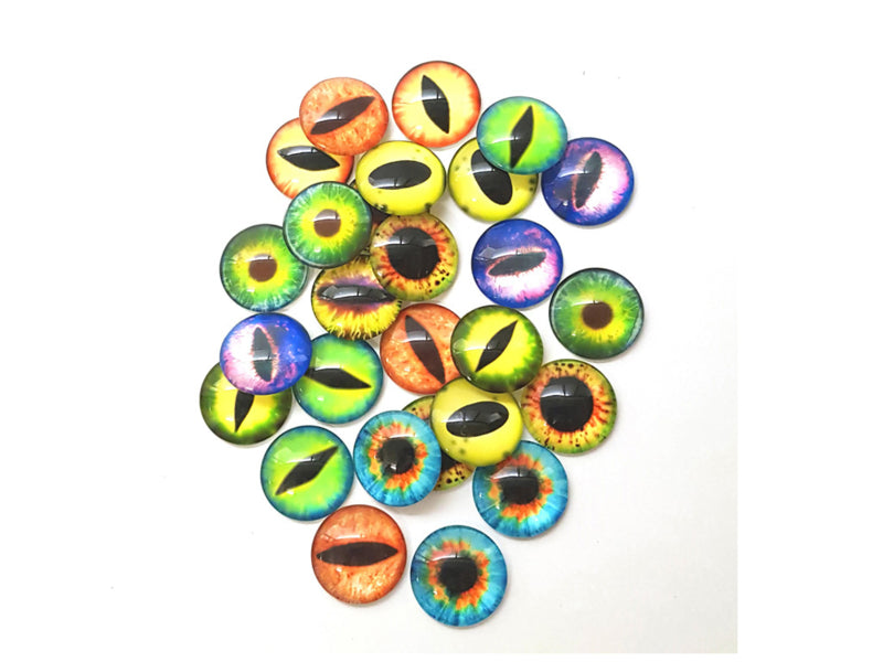 Ze bevatten een keuze uit 10 verschillende ontwerpen. Elk gebogen oog heeft een zwarte pupil en een bonte iris. Ze kunnen worden gebruikt voor een verscheidenheid aan ambachten, zoals collage en modellering. Natuurlijk zijn ze niet alleen geschikt voor drakenogen, maar ook voor monsters, aliens en allerlei andere wezens die je maar kunt bedenken.