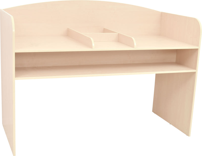Grote plank onder het tafelblad voor het opbergen van de benodigde items.