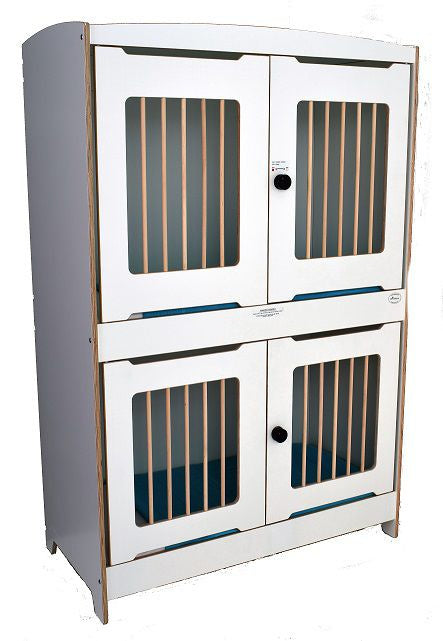 Duoslaper met draaihekjes, spijlen en handig draaislot. Dit slot is voor volwassenen met 1 hand te bedienen en toch zeer kindveilig. Dankzij de draaihekjes opent en sluit het bed bijna geruisloos.