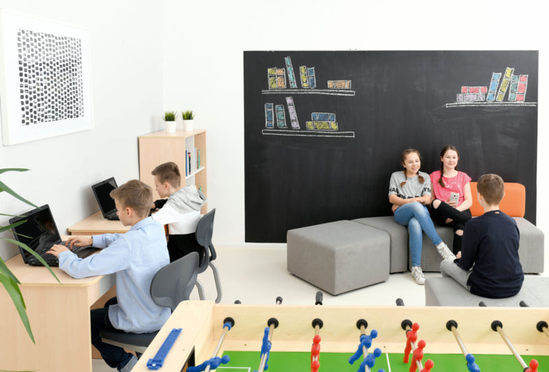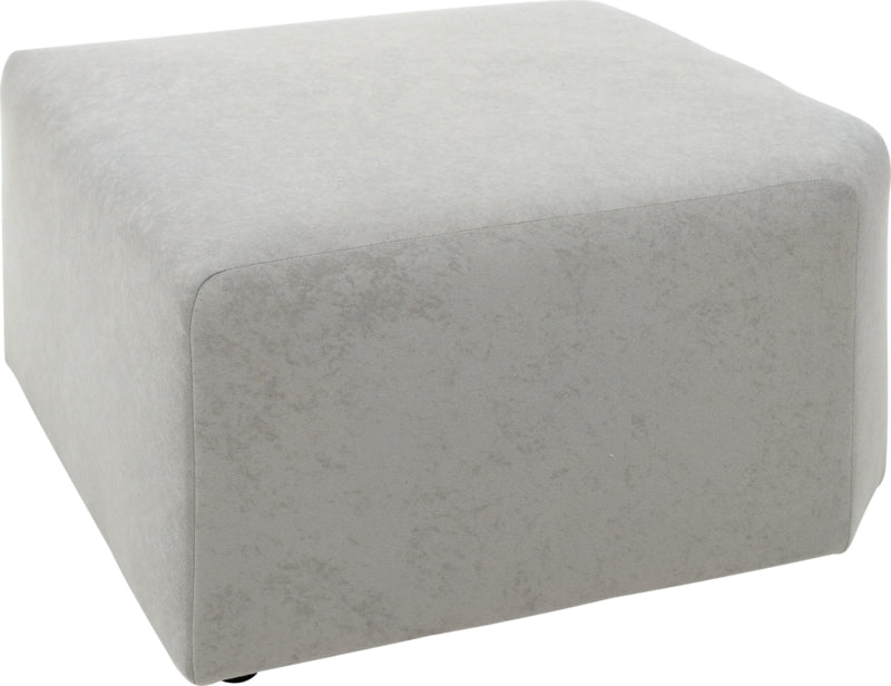 Foam zitje/poef op een houten frame, bedekt met zachte microvezel stof, prettig in aanraking.
