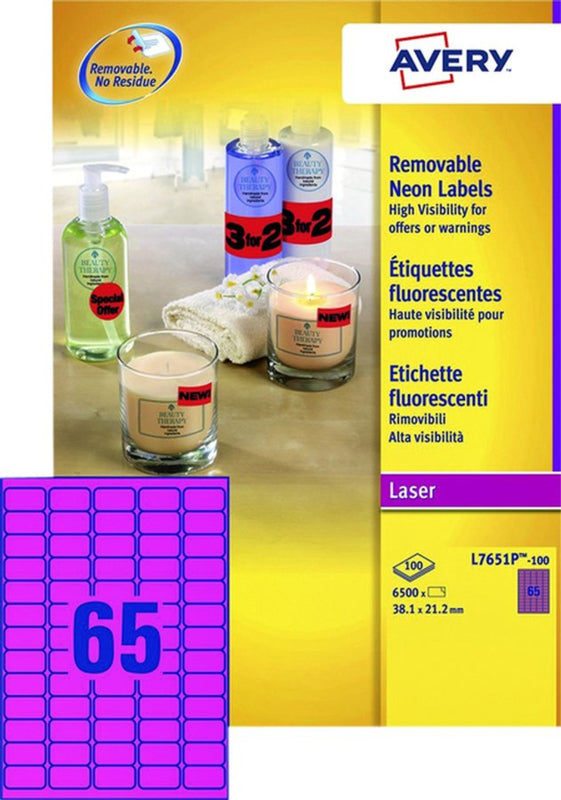 Etiket Avery L7651PF-100 38.1x21.2mm neon roze 6500stuks