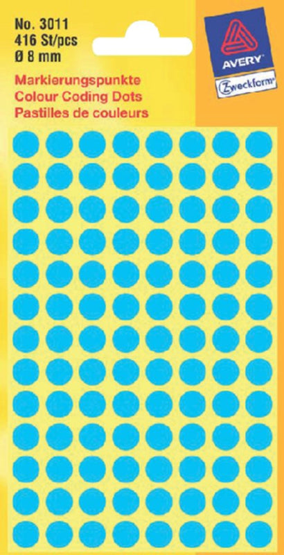 Etiket Avery Zweckform 3011 rond 8mm blauw 416stuks