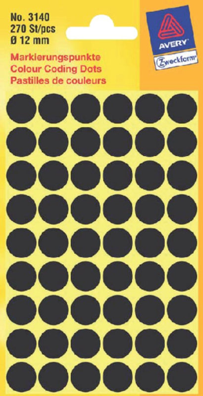 Etiket Avery Zweckform 3140 rond 12mm zwart 270stuks