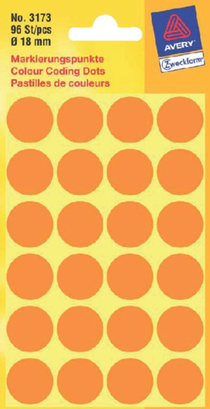 Etiket Avery Zweckform 3173 rond 18mm lichtoranje 96stuks