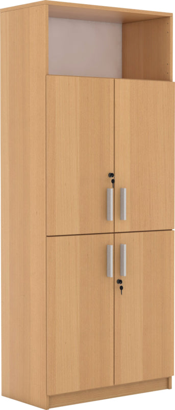 Hoge kast met 4 deuren met open vak van gelamineerd spaanplaat (dikte: 18 mm).