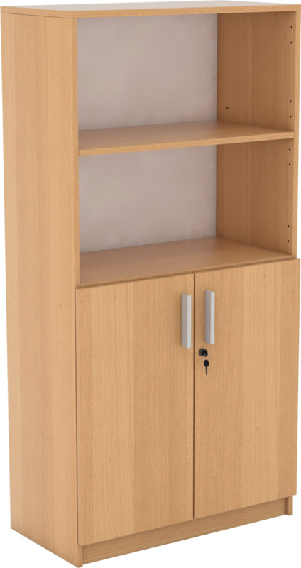 Boekenkast met opbergdeel van gelamineerd spaanplaat (dikte: 18 mm).