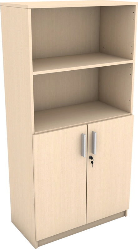 Boekenkast met opbergdeel van gelamineerd spaanplaat (dikte: 18 mm).