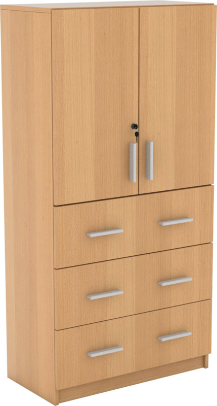 Kast met 3 laden van gelamineerd spaanplaat (dikte: 18 mm).