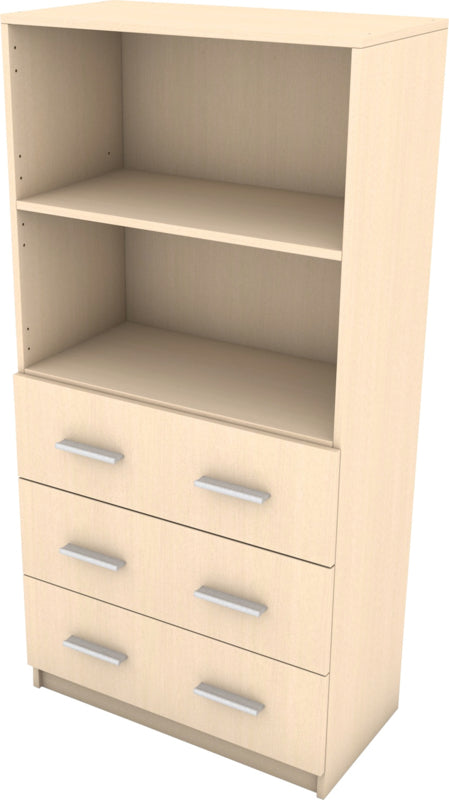 Kast met 3 laden en 1 plank van gelamineerd spaanplaat (dikte: 18 mm).