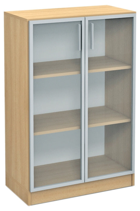 Middelgrote vitrinekast met aluminium frame, gemaakt van gelamineerd spaanplaat (dikte: 18 mm).