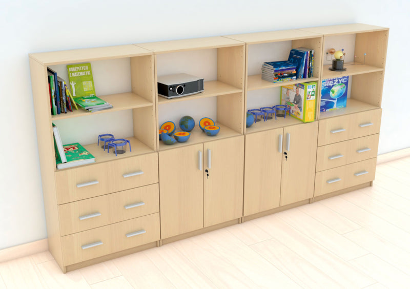 Meubelset van gelamineerd spaanplaat in een esdoorn kleur.