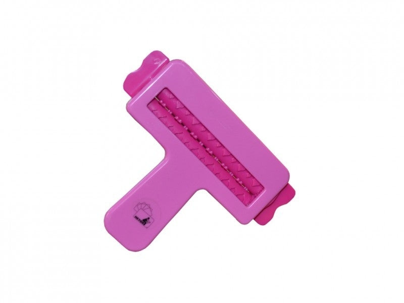 Door het papier tussen de rollen door te draaien worden de figuren in het papier gepraegd.