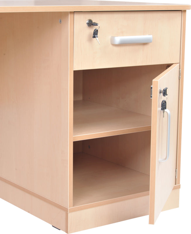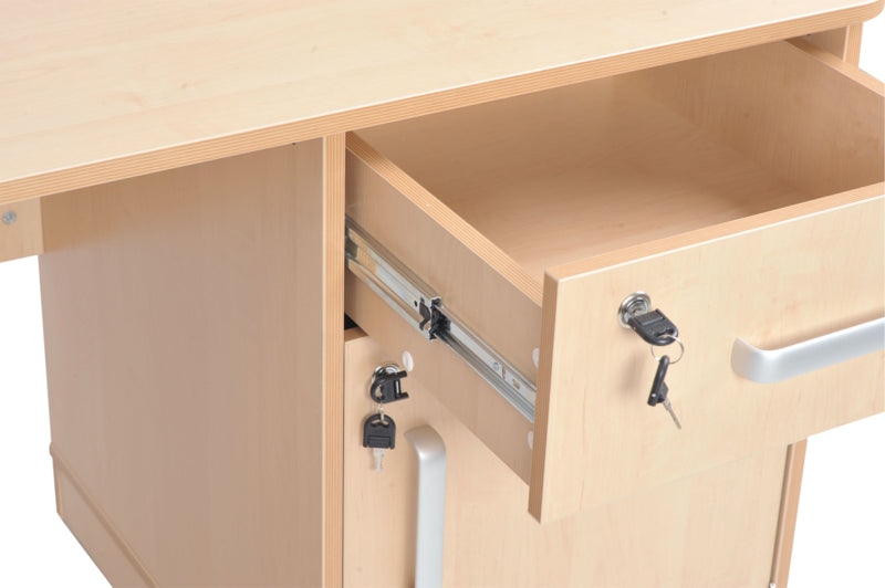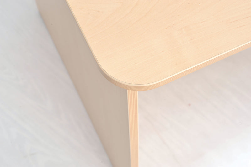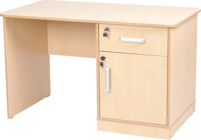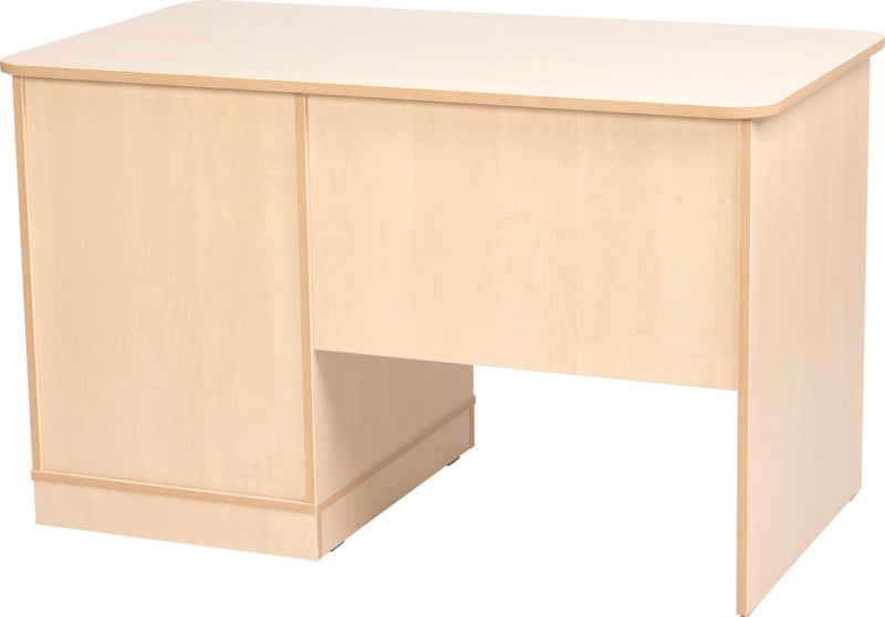 Flexi bureau gemaakt van gelamineerd spaanplaat (dikte: 18 mm) in berken kleur, met randafwerking (dikte: 2 mm).
