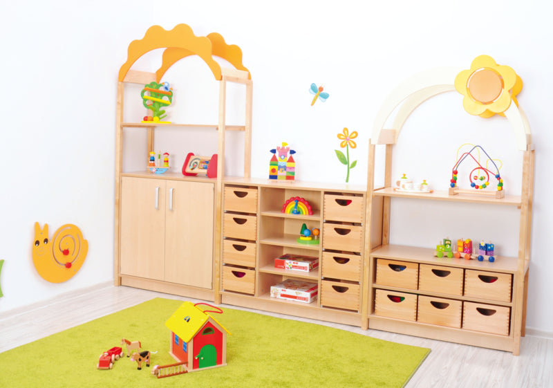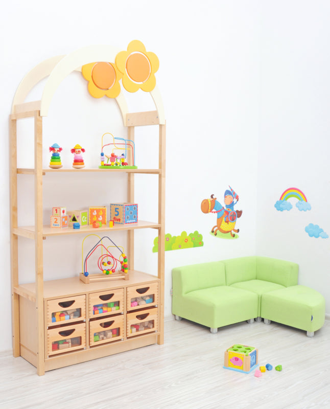 Decoratief kleurrijk dak met bloem bedoeld om de Flexi rekken aan te vullen.