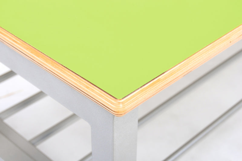 Zitting gemaakt van multiplex (dikte: 19 mm), gelamineerd met kleurrijke HPL.