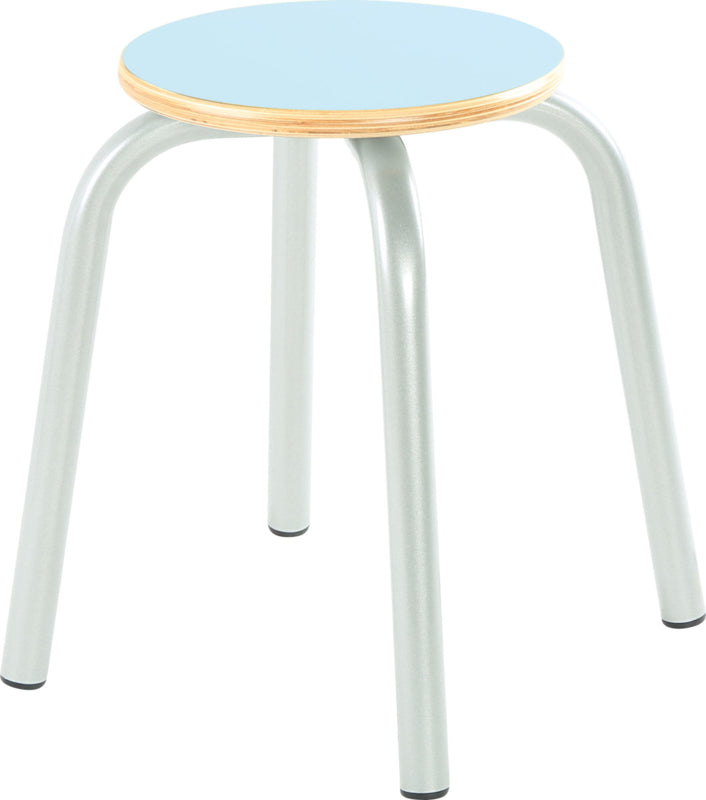 Zitting gemaakt van multiplex (dikte: 19 mm), bedekt met kleurrijk HPL-laminaat. Poten van ronde buis (dia. 30 mm).
