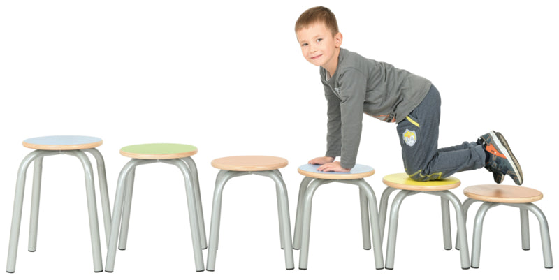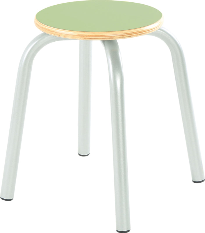 Zitting gemaakt van multiplex (dikte: 19 mm), bedekt met kleurrijk HPL-laminaat. Poten van ronde buis (dia. 30 mm).