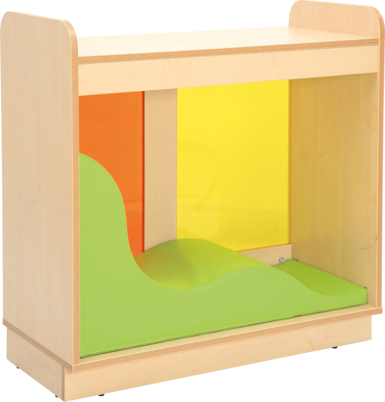 De achterkant van de kast is gemaakt van kleurrijk plexiglas.