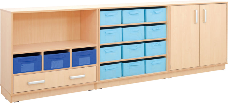 1 x 099180 kast 3 vakken voor bakken en 1 lade, met plint, afm. 89,1 x 41,5 x 87,1 cm.
