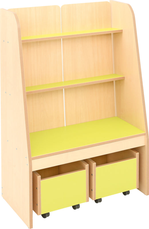 Gemaakt van gelamineerd spaanplaat in een berken kleur met kleurrijke accenten.