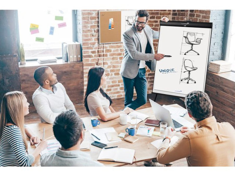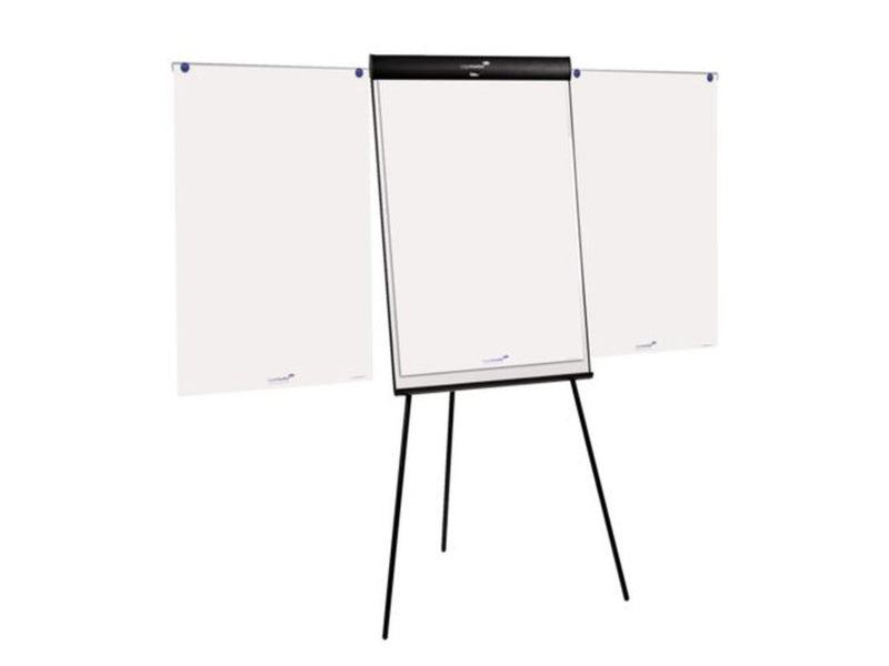 - Opklapbare papierklem voor gemakkelijke wisseling van flipoverblokken.