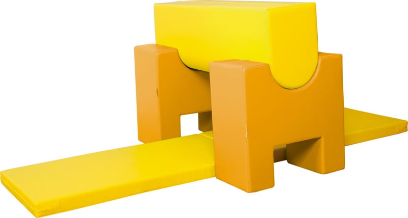 Set foamblokken gemaakt om hindernisbanen voor de jongste kinderen te maken. Ontwikkelt en oefent motorische coördinatie uit. Het is een geweldige plek om voor peuters te spelen. Elementen van verschillende hoogtes en hoeken moedigen aan om te kruipen, klimmen, obstakels te overwinnen enz., Wat een positieve invloed heeft op de algemene ontwikkeling van het kind en op de motoriek