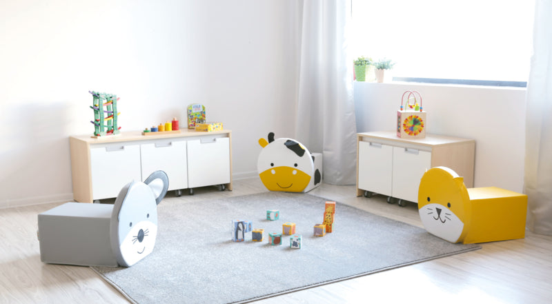 Zachte poef gemaakt van foam, met katoenen hoes. Wasbaar.. Elementen van verschillende hoogtes en hoeken moedigen aan om te kruipen, klimmen, obstakels te overwinnen enz., Wat een positieve invloed heeft op de algemene ontwikkeling van het kind en op de motoriek