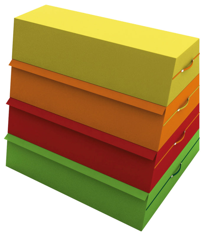 Set van 4 blokken in 4 kleuren: geel, oranje, rood en groen.