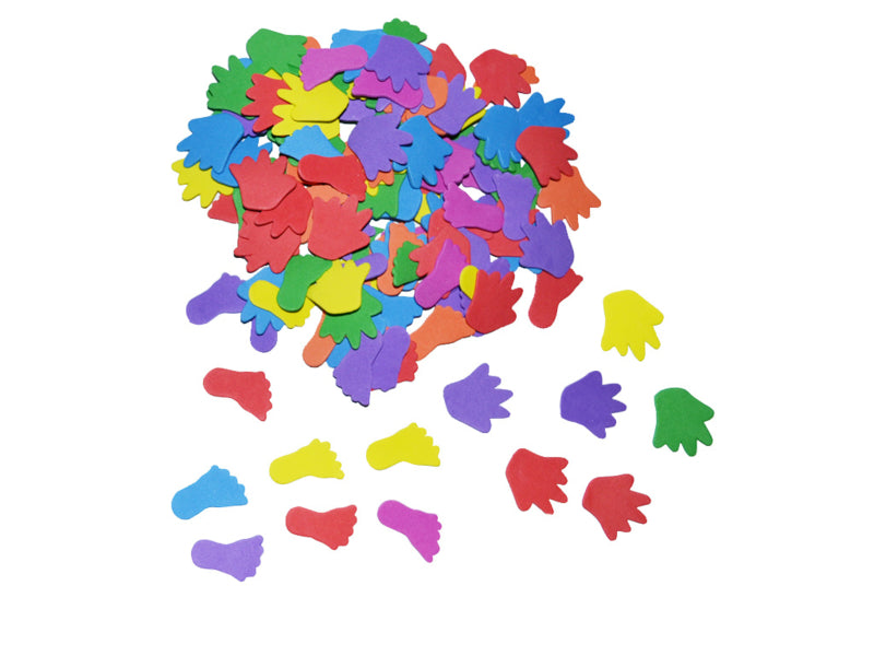 Foam handjes en voetjes assorti 3,5cm. 130stuks