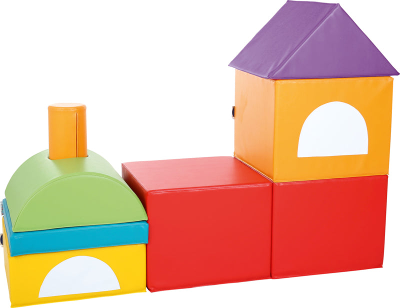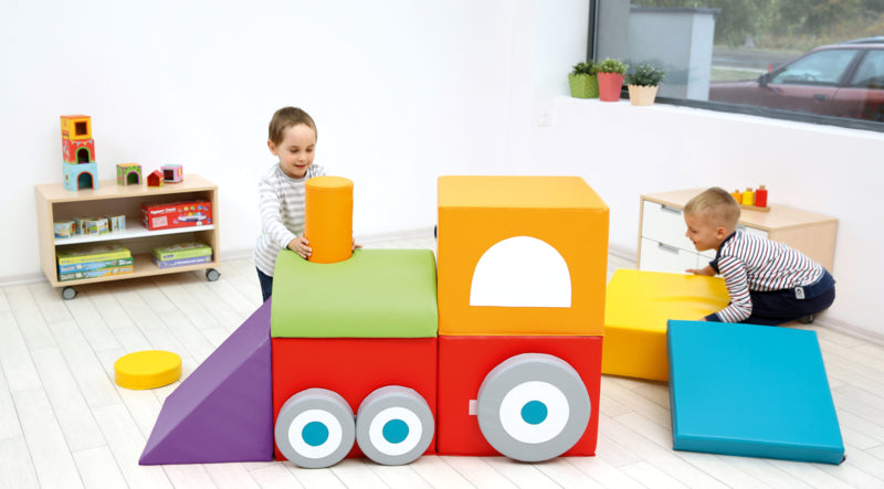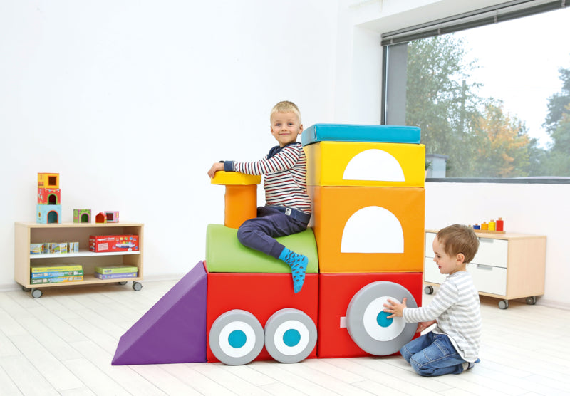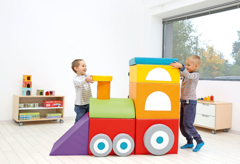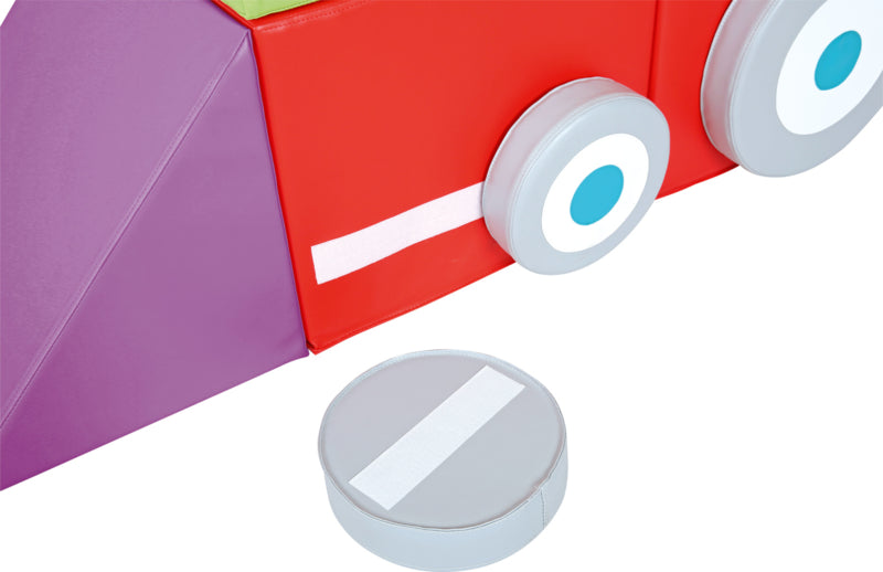 Set van foam gemaakt van 15 stuks (inclusief wielen). Ontwikkelt en oefent motorische coördinatie.