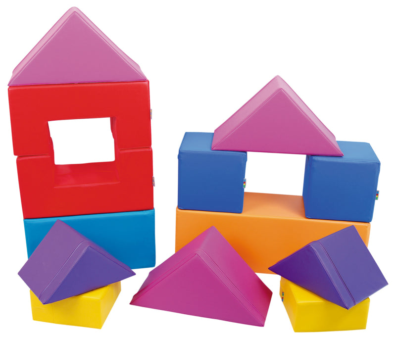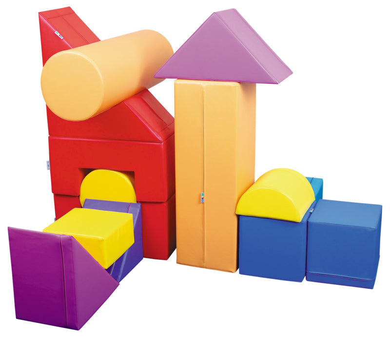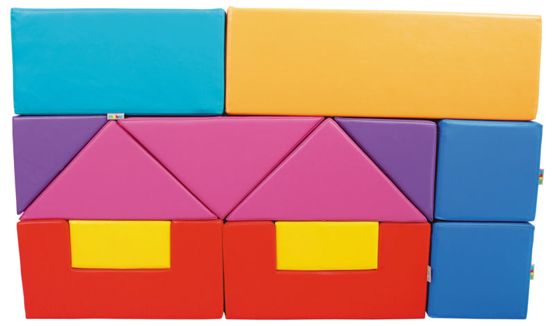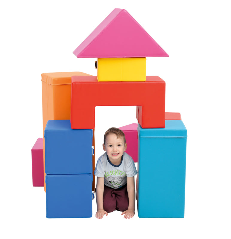 Set foamblokken gemaakt om hindernisbanen voor de jongste kinderen te maken. Ontwikkelt en oefent motorische coördinatie uit. Het is een geweldige plek om voor peuters te spelen. Elementen van verschillende hoogtes en hoeken moedigen aan om te kruipen, klimmen, obstakels te overwinnen enz., Wat een positieve invloed heeft op de algemene ontwikkeling van het kind en op de motoriek.