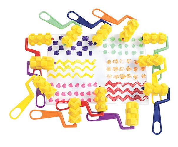 U krijgt geleverd: 12 foam verfrollers met 2 x 6 verschillende patronen