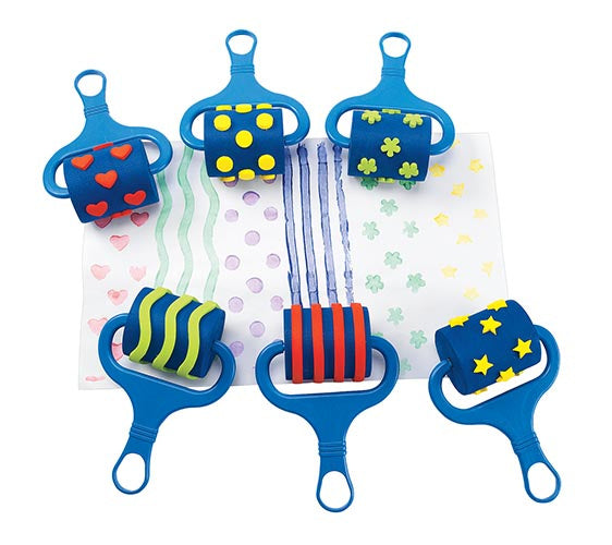 6 verf rollers met 7 cm breed rol vlak, met 6 verschillende ontwerpen.