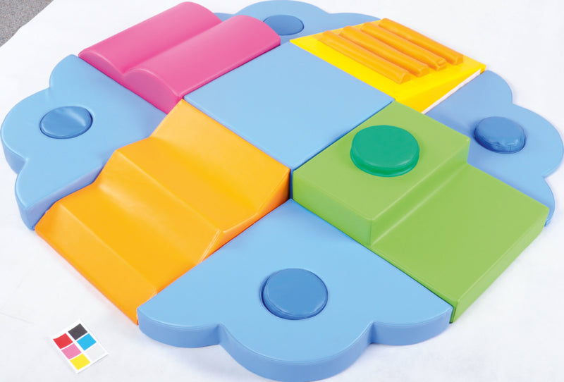 Foam blok in zig zag vorm bedekt met ftalaatvrij duurzaam vinyl met klittenband.