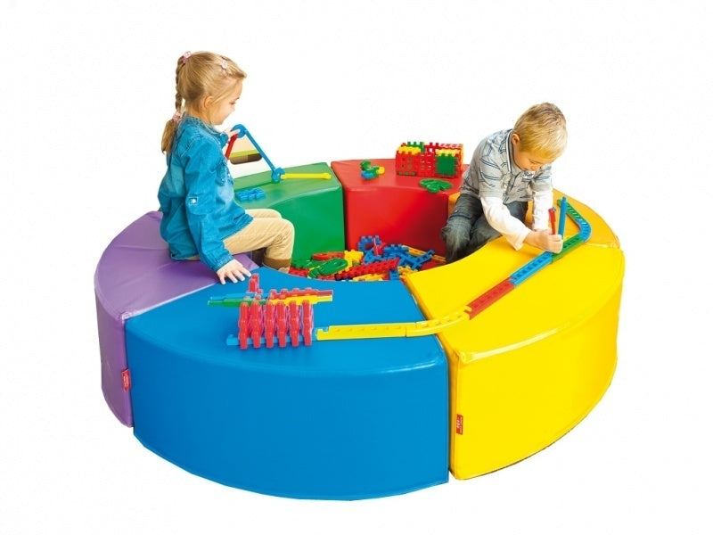 Alle delen kunnen met elkaar verbonden worden met klittenband om een cirkel te maken of kunnen apart gebruikt worden.