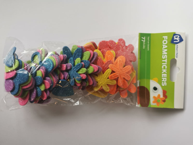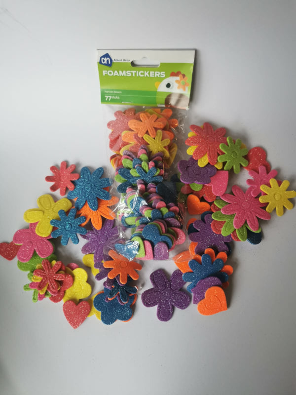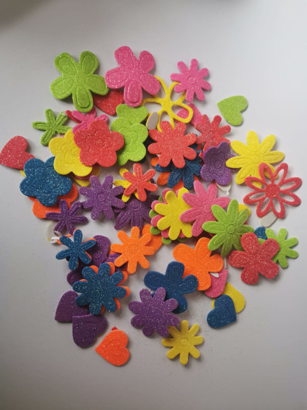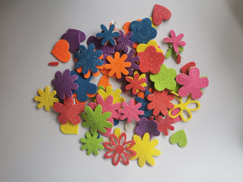Foam figuren, hartjes en bloemen Voor het versieren van kaarten, fotolijstjes, boekjes en veel andere materialen.
