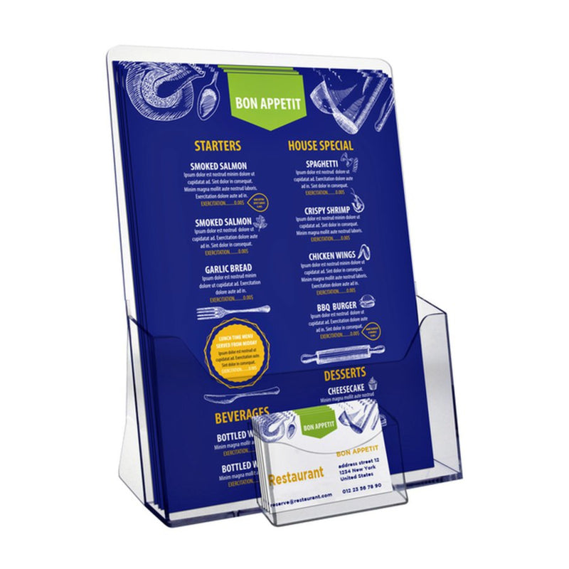 - Folderbakje voor een glasheldere presentatie van folders, catalogi en prijskaarten.