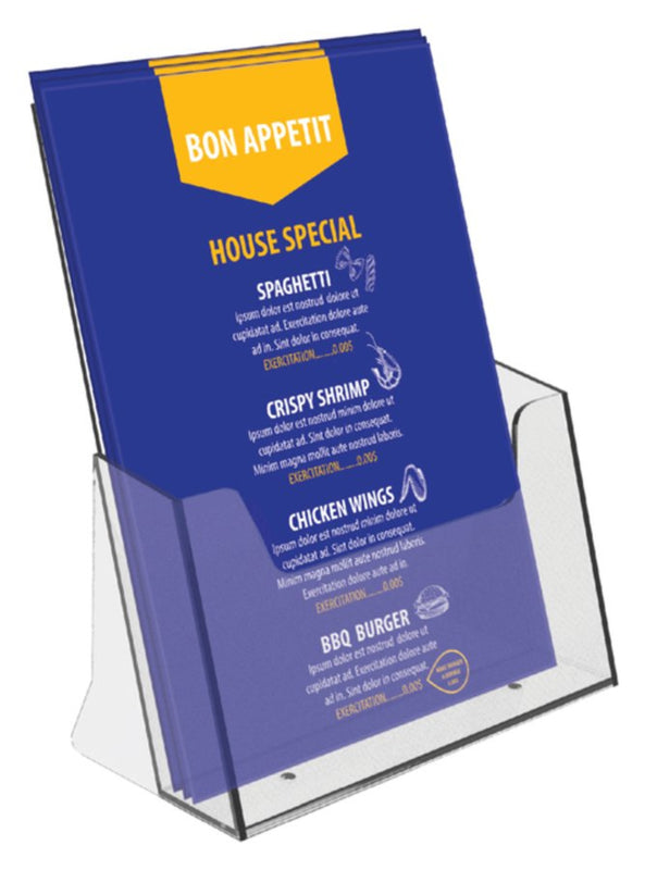 - Folderbakje voor een glasheldere presentatie van folders, catalogi en prijskaarten.