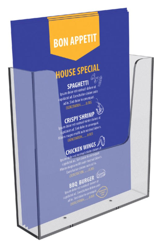 - Folderbakje voor een glasheldere presentatie aan de wand van folders, catalogi en prijskaarten.