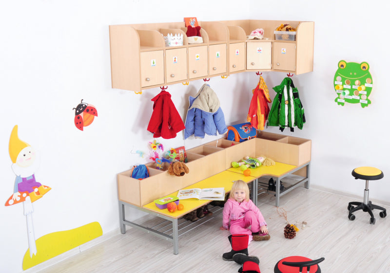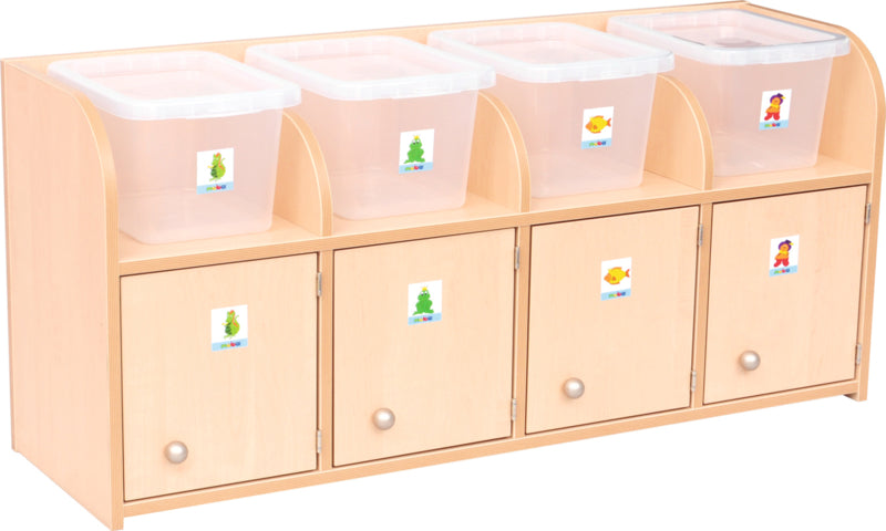 Garderobe kast met 4 deuren gemaakt van gelamineerd spaanplaat in een berken kleur (dikte 18 mm.) met ABS randafwerking.