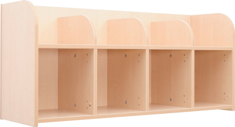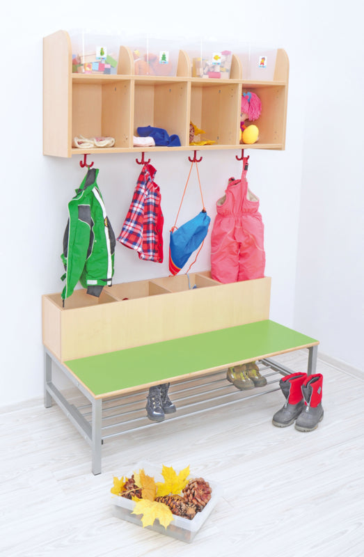 Garderobe kast met 4 dubbele vakken gemaakt van gelamineerd spaanplaat in een berken kleur (dikte 18 mm.) met ABS randafwerking.