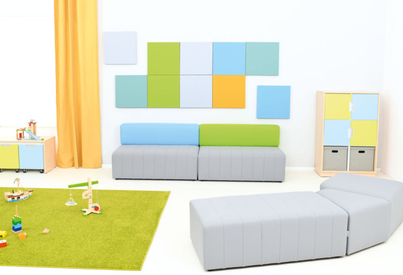 Decoratieve geluiddempende panelen in een vierkante vorm, bedekt met vlamvertragende stof. Te monteren op een muur met montagelijm.