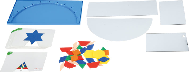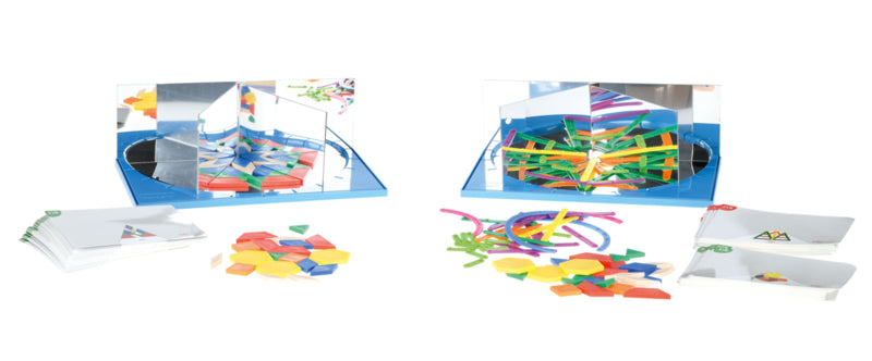 Perfecte set om geometrie te leren en ruimtelijke verbeelding te ontwikkelen. Met deze set kan het kind ruimtelijke composities van taakkaarten leggen of een eigen compositie maken. Met de bijgevoegde spiegels kunnen de vormen vanuit verschillende perspectieven bekeken worden.