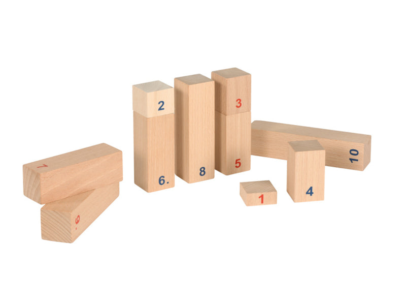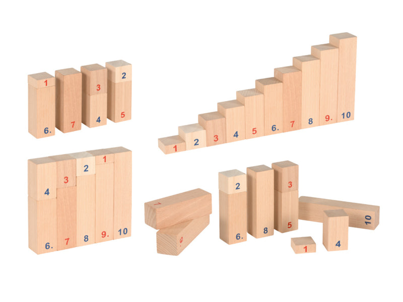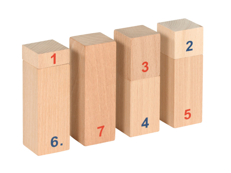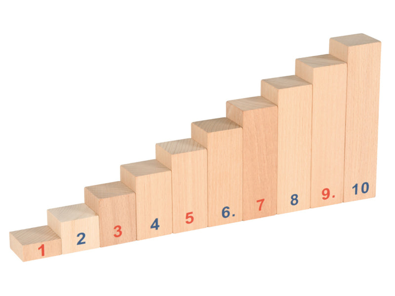 Met deze houten blokken is het rekenen inzichtelijker gemaakt voor het kind.