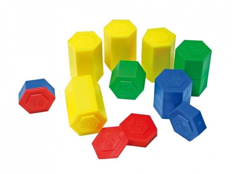 54 dlg.: 4 x 20 gram, 10 x 10 gram, 20 x 5 gram, 20 x 1 gram.