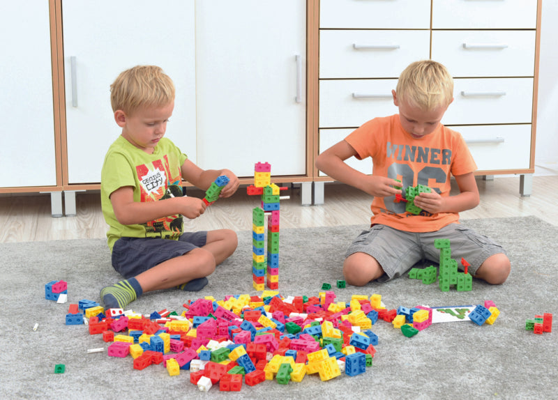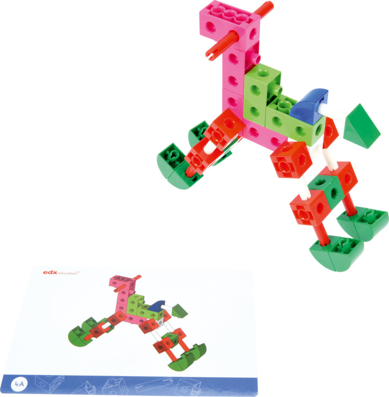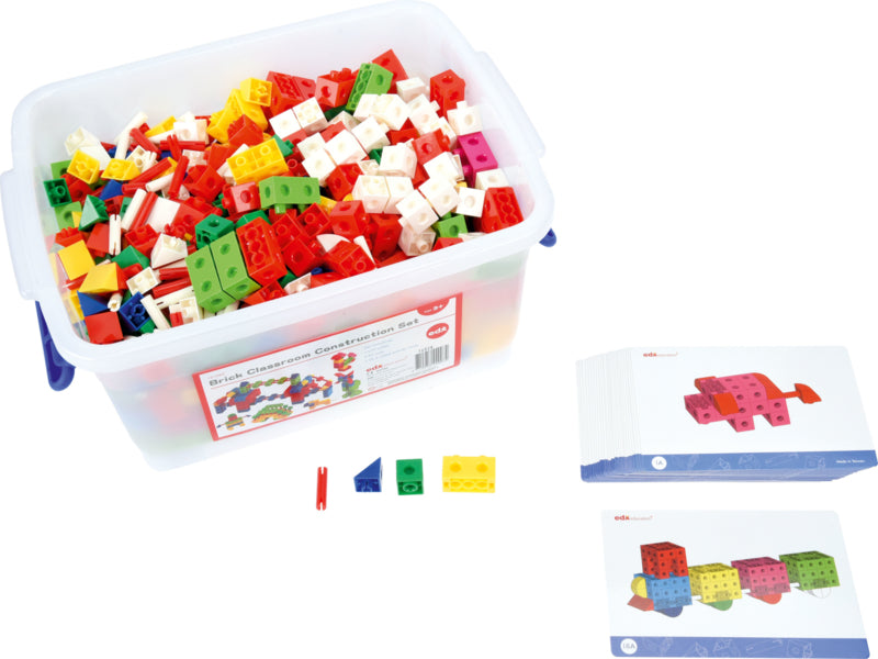 Een grote set kleurrijke blokken voor spel en wiskunde oefeningen: sorteren, matchen, verbinden enz. Bovendien bevat de set taakkaarten.