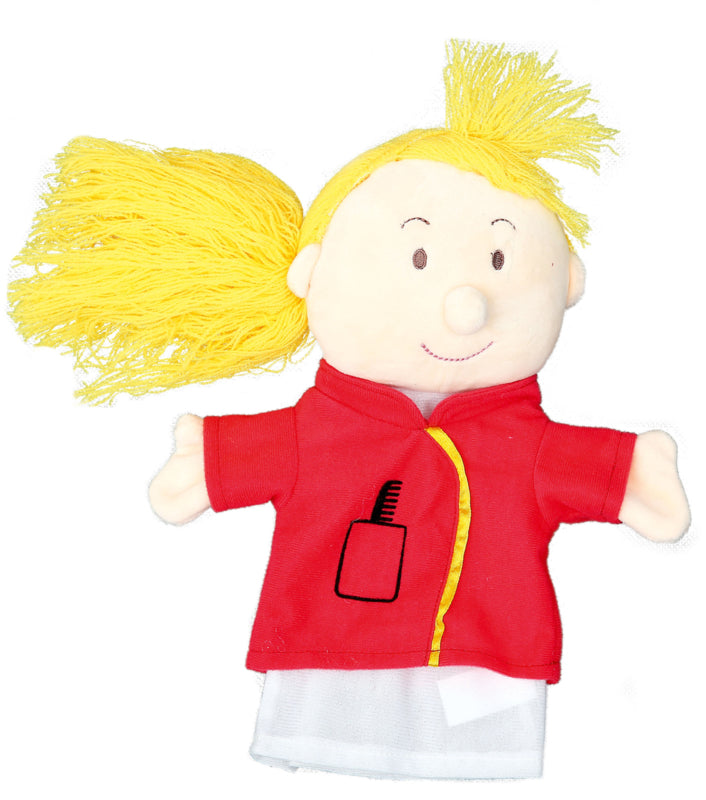 Pop gemaakt van zachte stof, de kleding is gemaakt van vilt.
