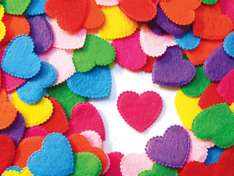 100 vilten harten in felle kleuren. Deze harten zijn een ideale aanvulling op een verscheidenheid aan ambachtelijke activiteiten. Ze kunnen worden toegevoegd aan een collage of worden gebruikt als versieringen. Ze kunnen worden genaaid of gelijmd op stof of karton.
