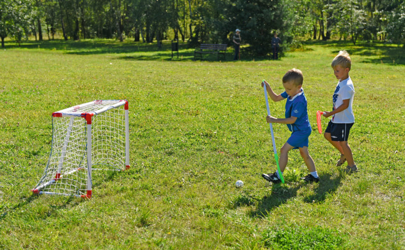 2 plastic hockey sticks lengte: 92 cm., koplengte: 22 cm.