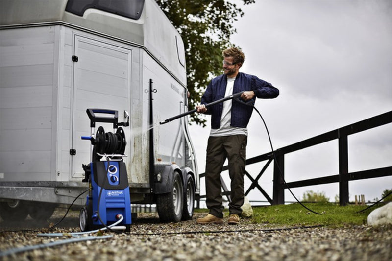 - Deze krachtige hogedrukreiniger van Nilfisk kan grotere en frequente schoonmaaktaken makkelijk aan.